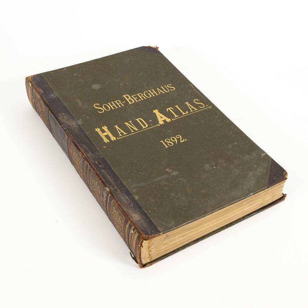 Newly edited by F. Handtke, 8th improved and increased edition. 100 colored steel engraved maps, in half leather binding. Old signs of use.