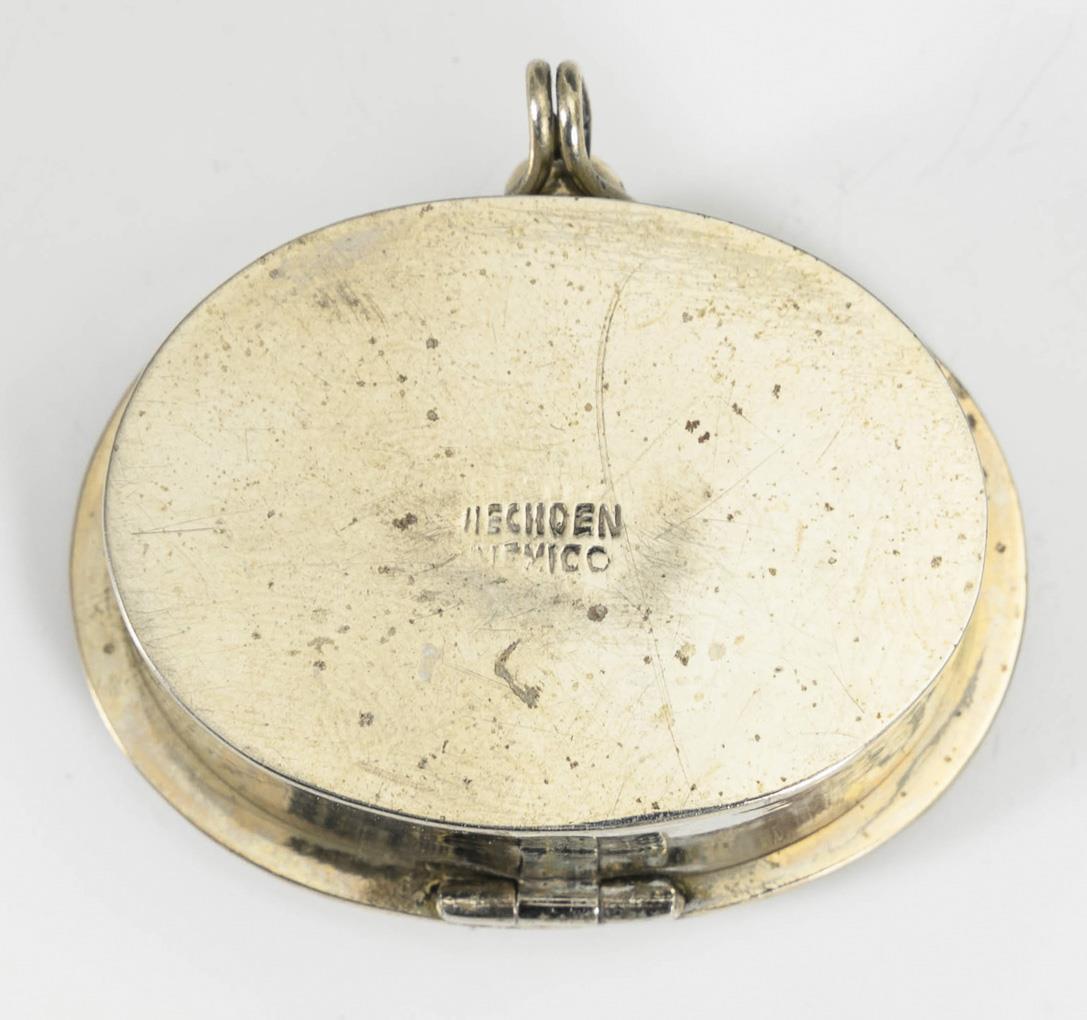 2 silver pencils, 2 match cases (1x "Cartier, Made in USA"), oval picture frame, box with mother-of-pearl lid and round powder compact. Signs of use.