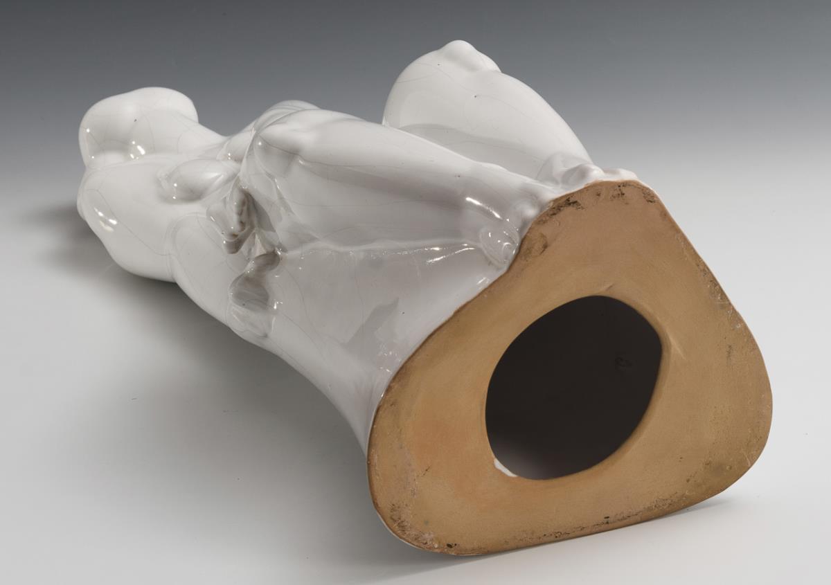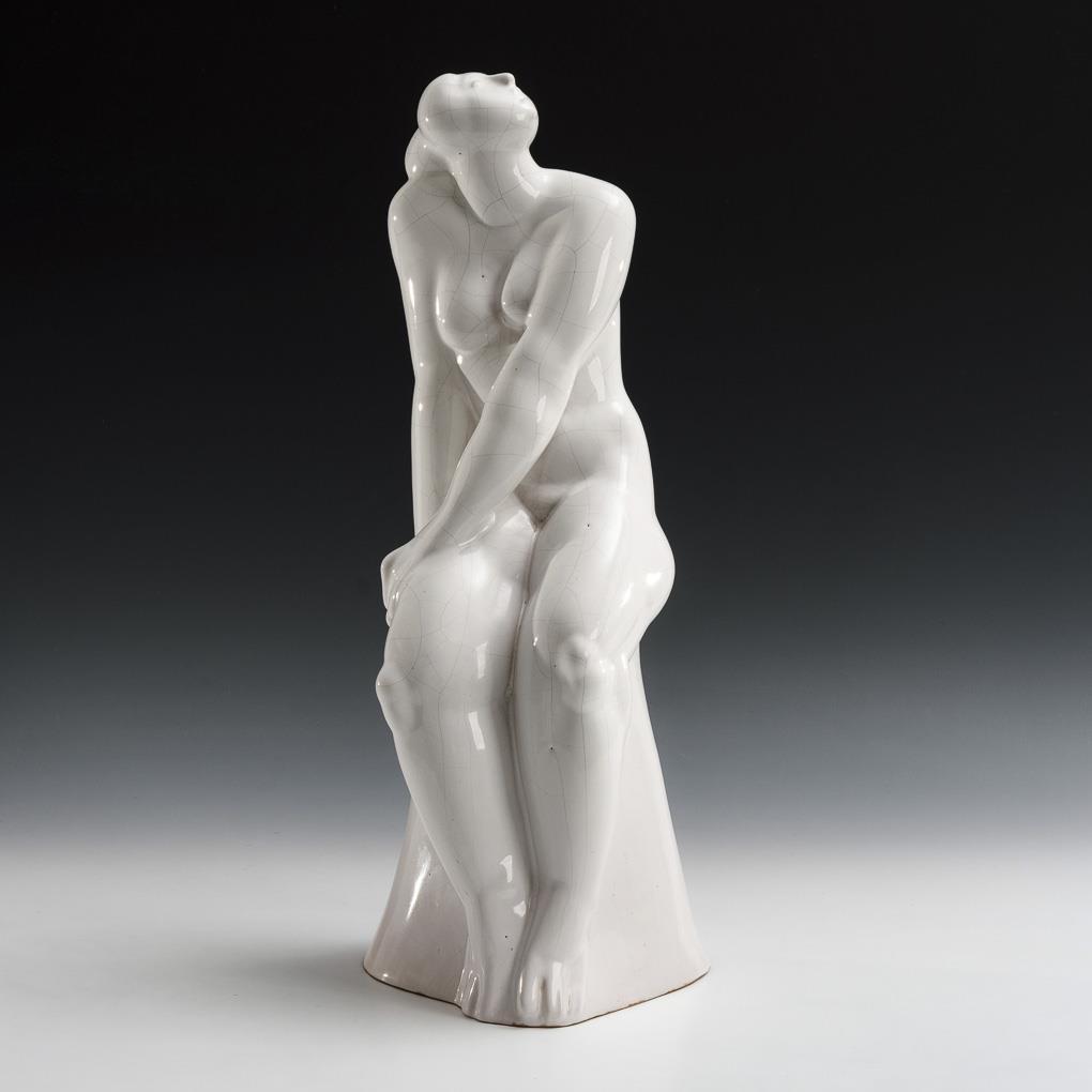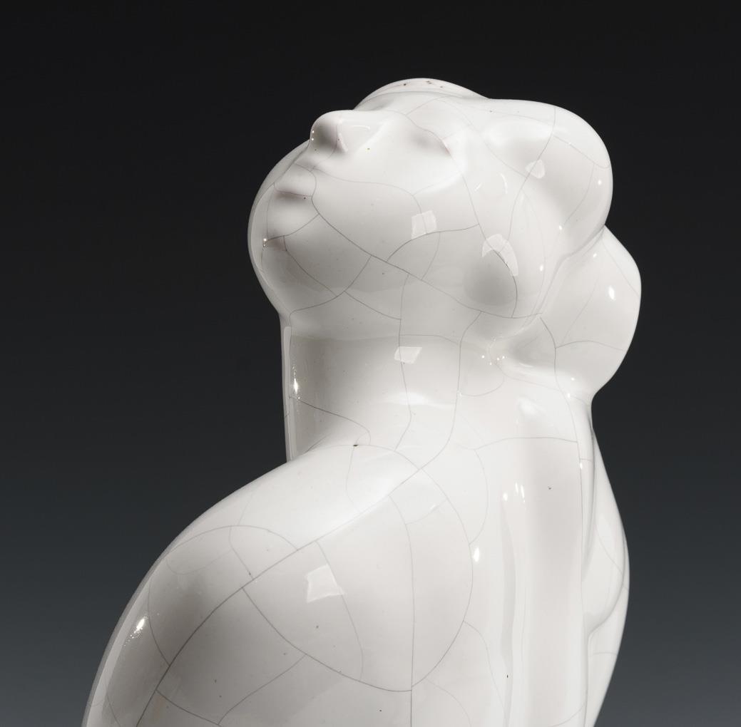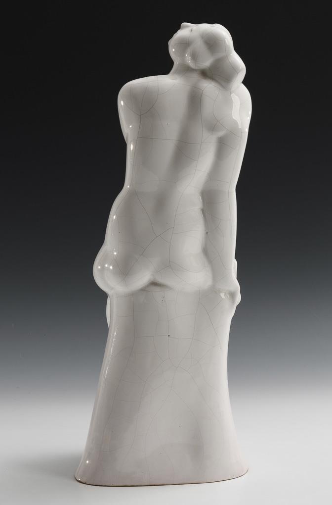 Sitting nude of a young woman leaning up looking up to the sky. Glaze crackled.
