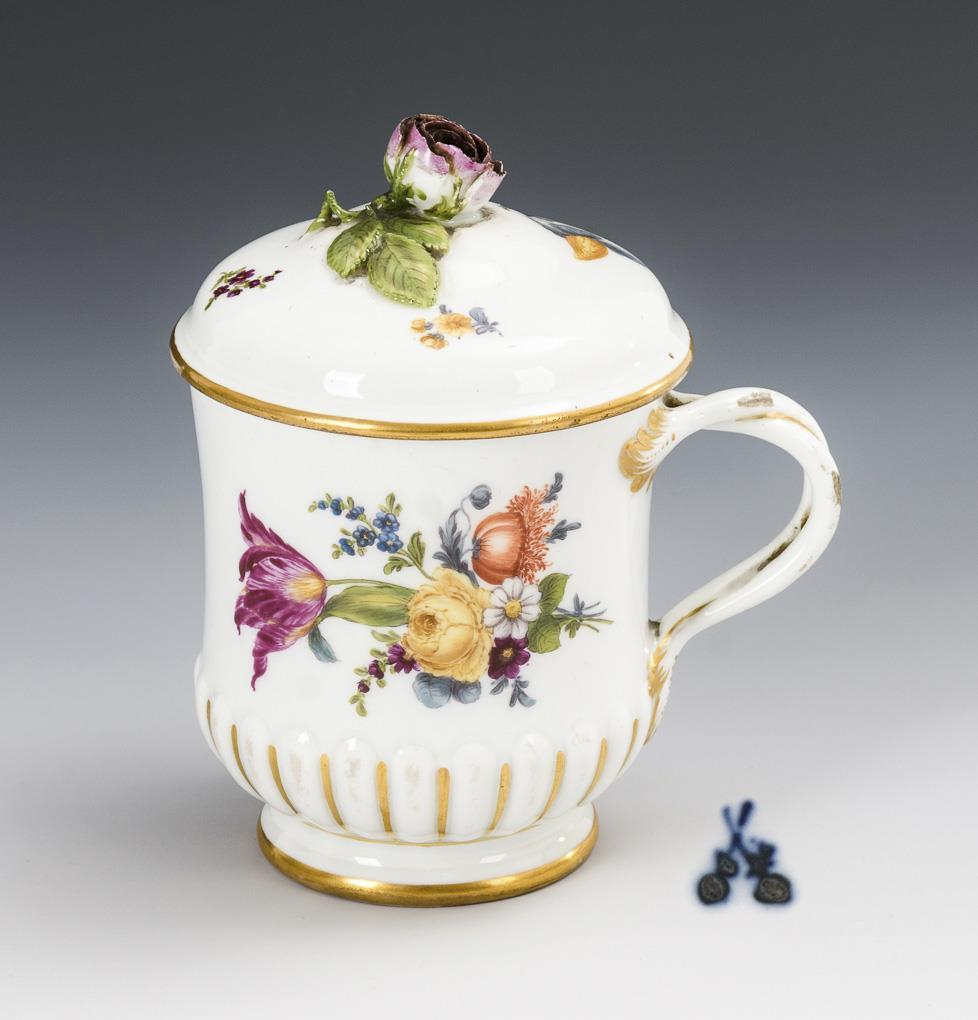 Lid cup with floral painting. Meissen.