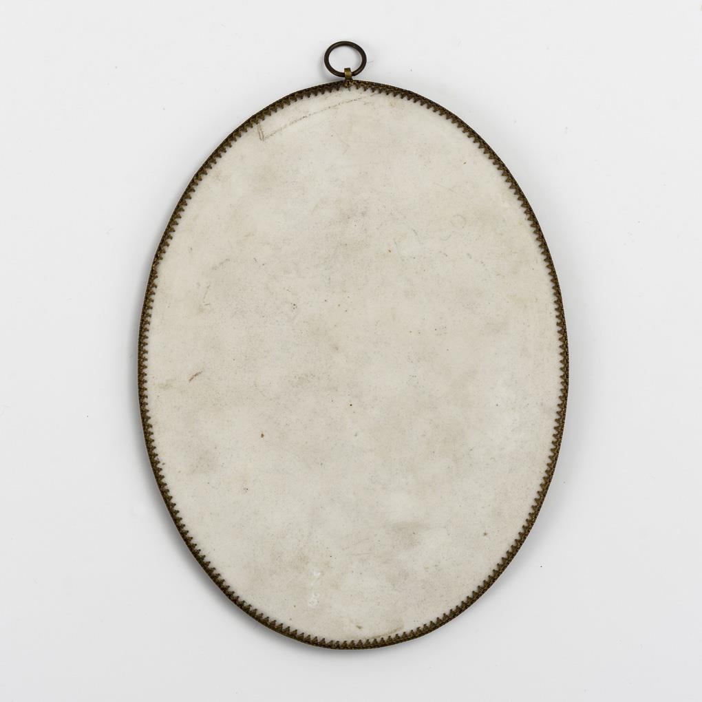 Oval plate depicting an angel on clouds, after one of the famous angels from the painting of the Sistine Madonna by Raphael (1483-1520).