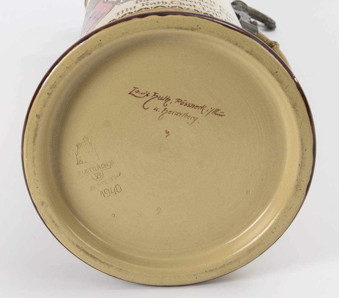 Mettlach mint mark with no. "1940". Painter signature Louis Huth Pössneck/Thür. and Heidelberg.