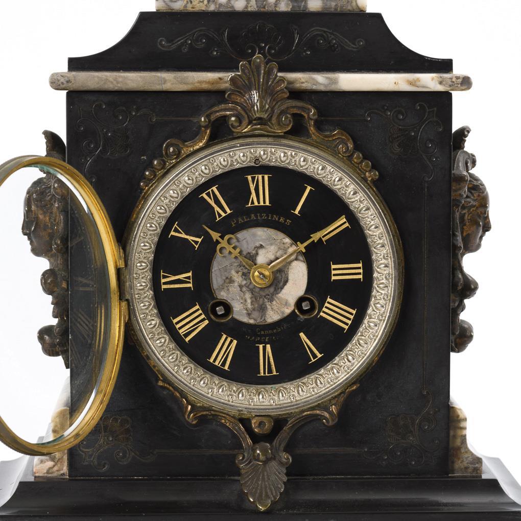 Movement with half-hour strike on bell, running. Glazed dial with Roman numerals and Romaines hands, marked "Palaizines [...] Marseille".