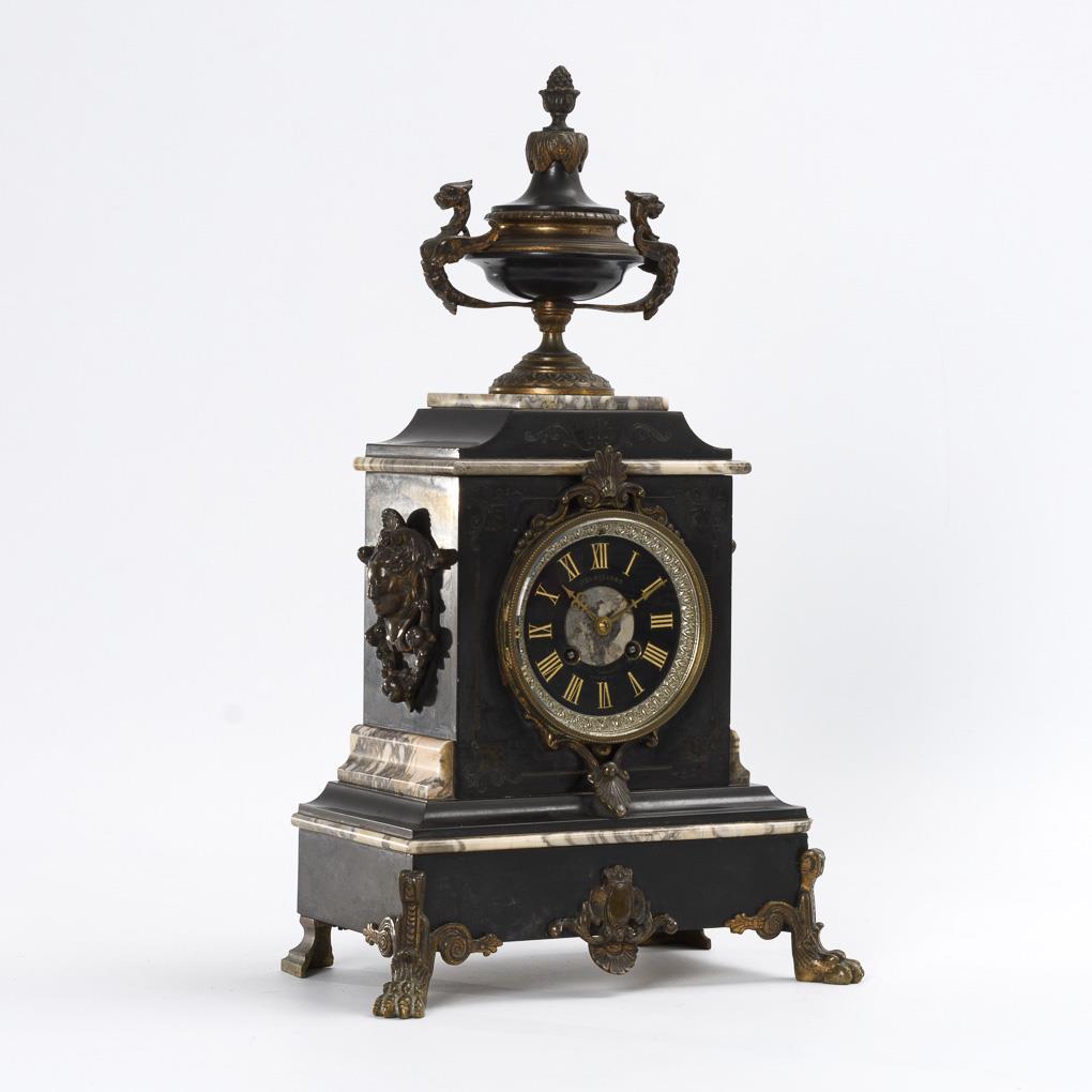 Marble chimney clock with amphora crowning. JAPY FRÈRES.