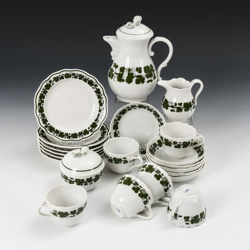 Mocha service with vine leaves decor. Meissen.