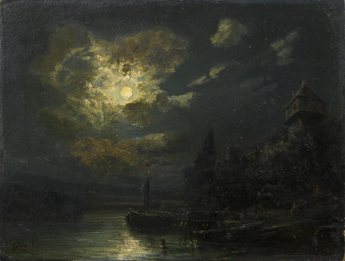 Sailor on the jetty below the house in the bright light of the full moon. Traces of age.