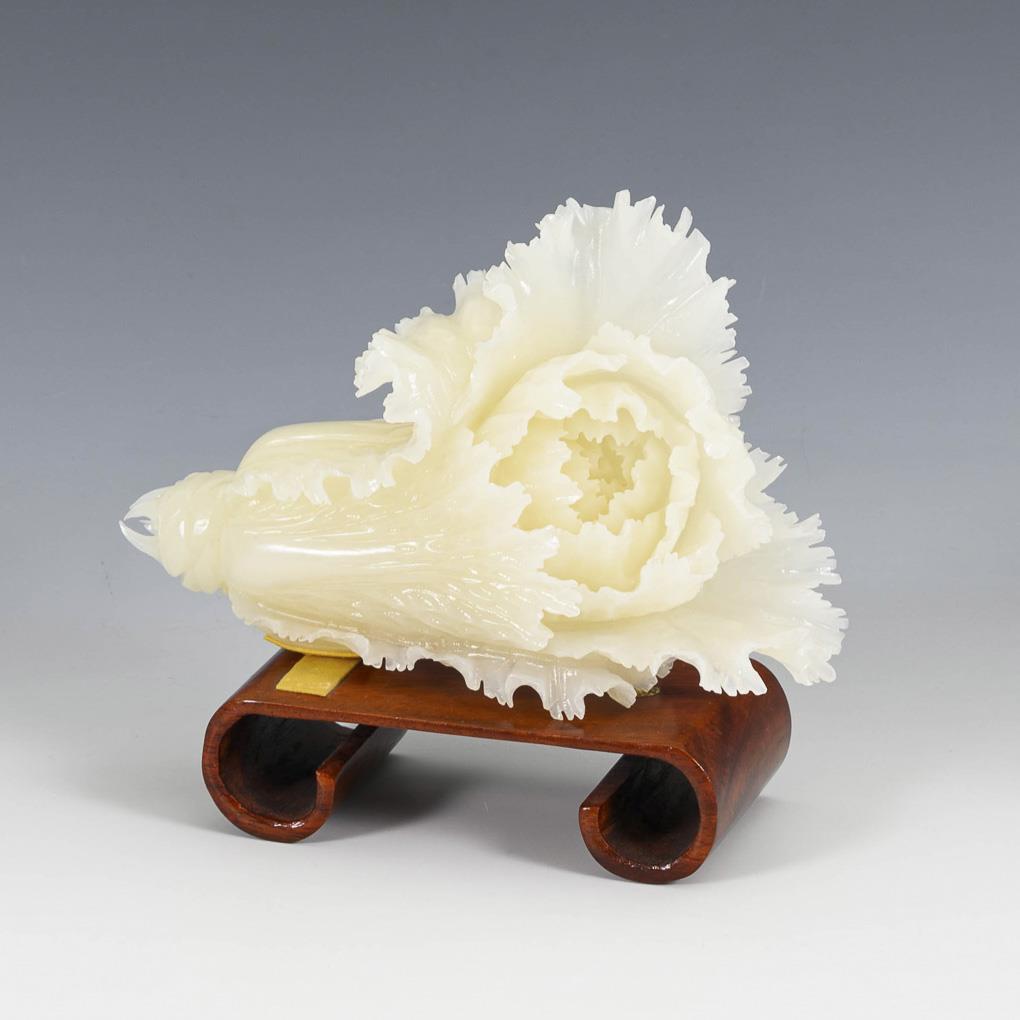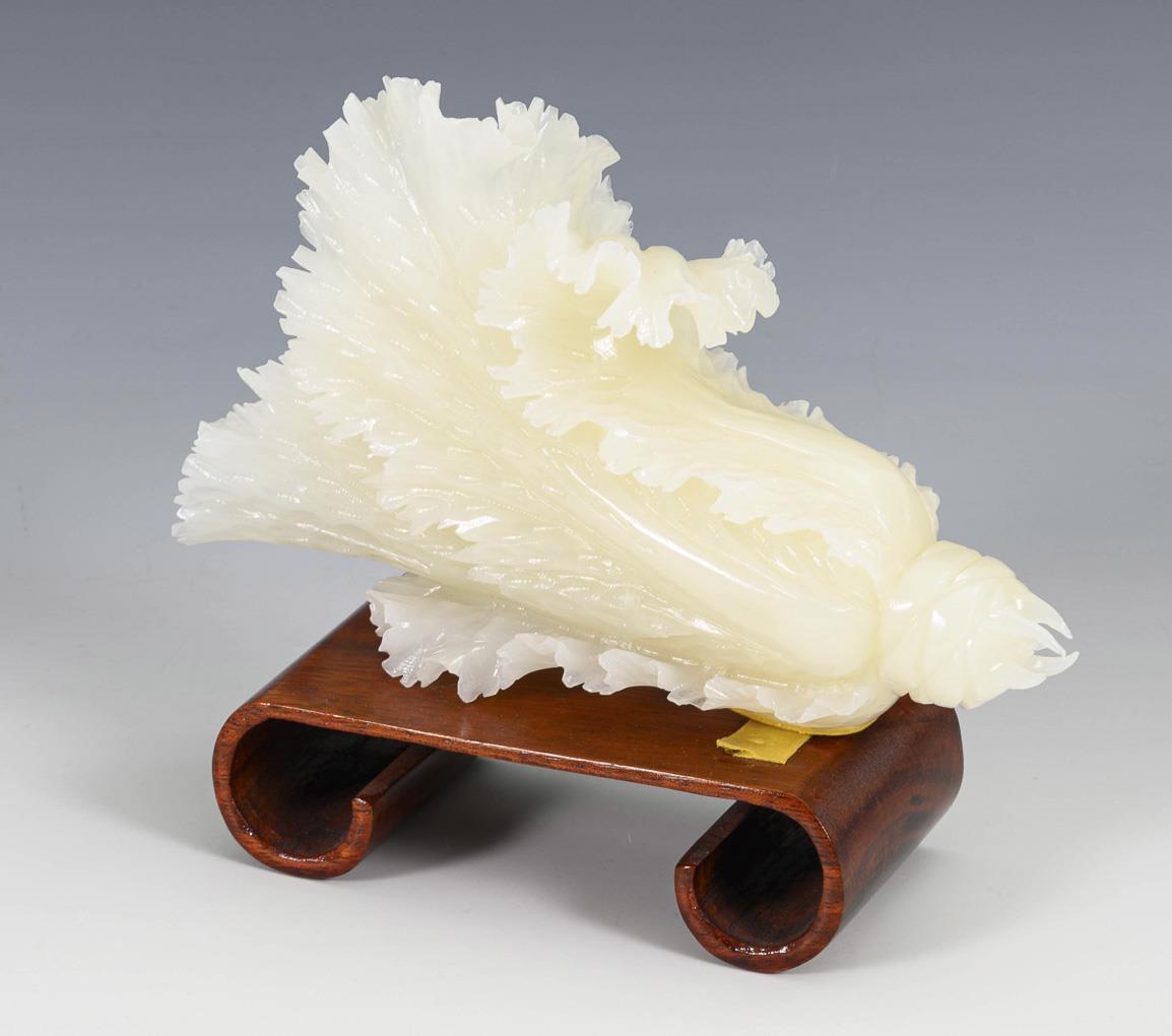 Naturalistic cut Chinese cabbage in masterful execution. Loosely mounted on wooden base. A small, inconspicuous break.
