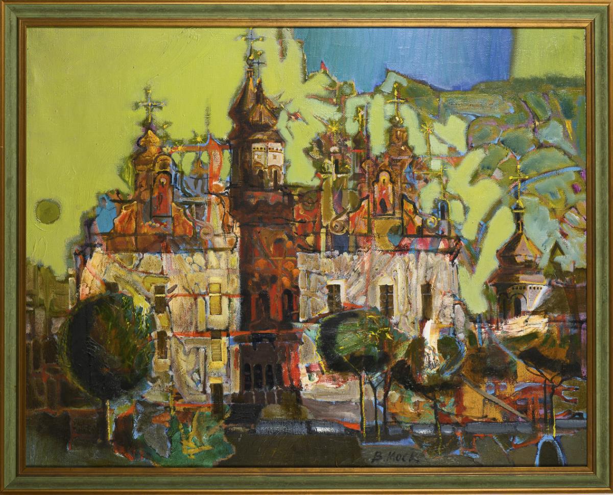 Oil / canvas. Signed in Cyrillic lower right, inscribed/titled in Cyrillic on verso. 1994.