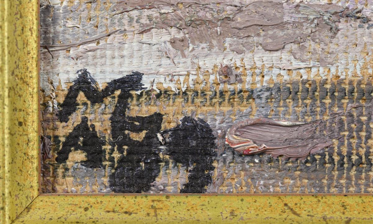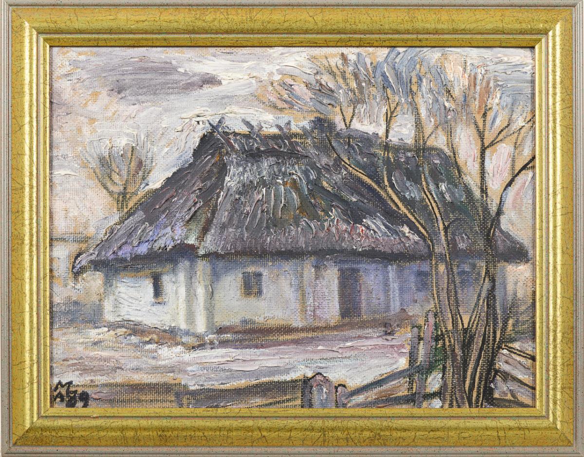 Oil/painting board. Ukraine. Monogrammed lower left, inscribed/titled in Cyrillic on verso. (19)89.