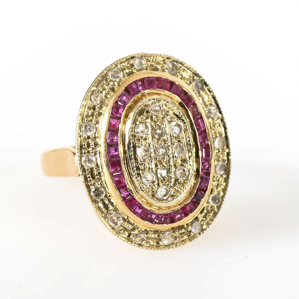 Large ring with diamonds and rubies.