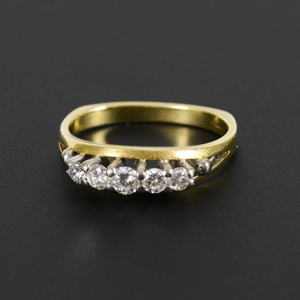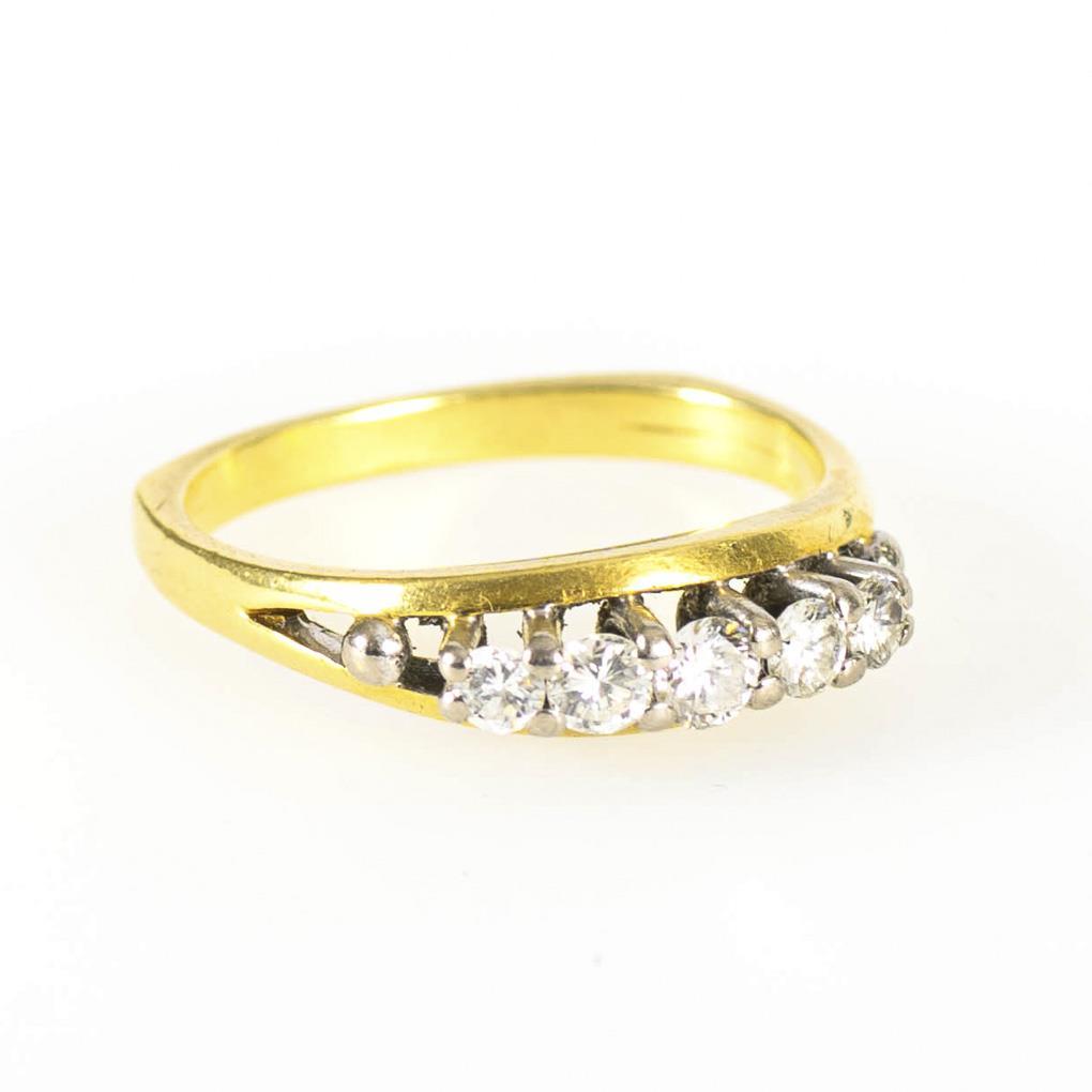 Yellow gold / white gold 750 tested. Diamonds total 0.49 ct. Ring size 55. 4.2 g.