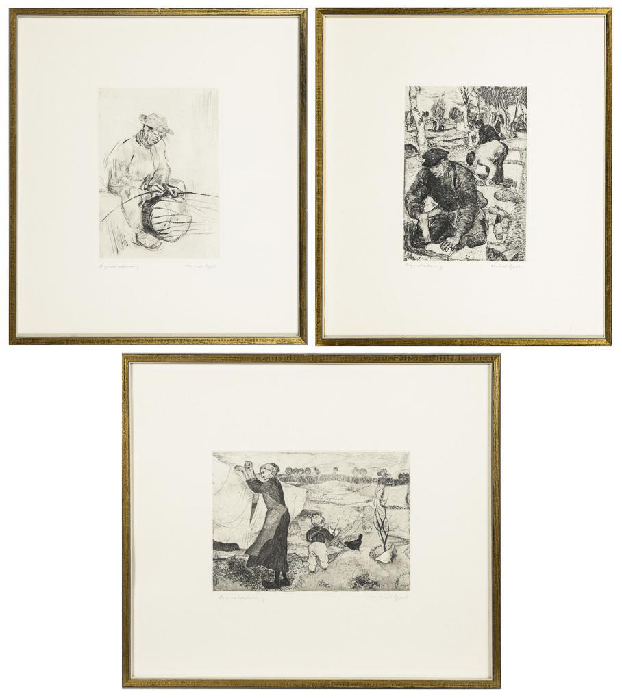 Gentleman weaving a basket, plate: 20.5 x 14.5 cm | Stone setter paving a path, plate: 20.5 x 14.5 cm | Lady bleaching laundry, plate: 14.5 x 20.5 cm.