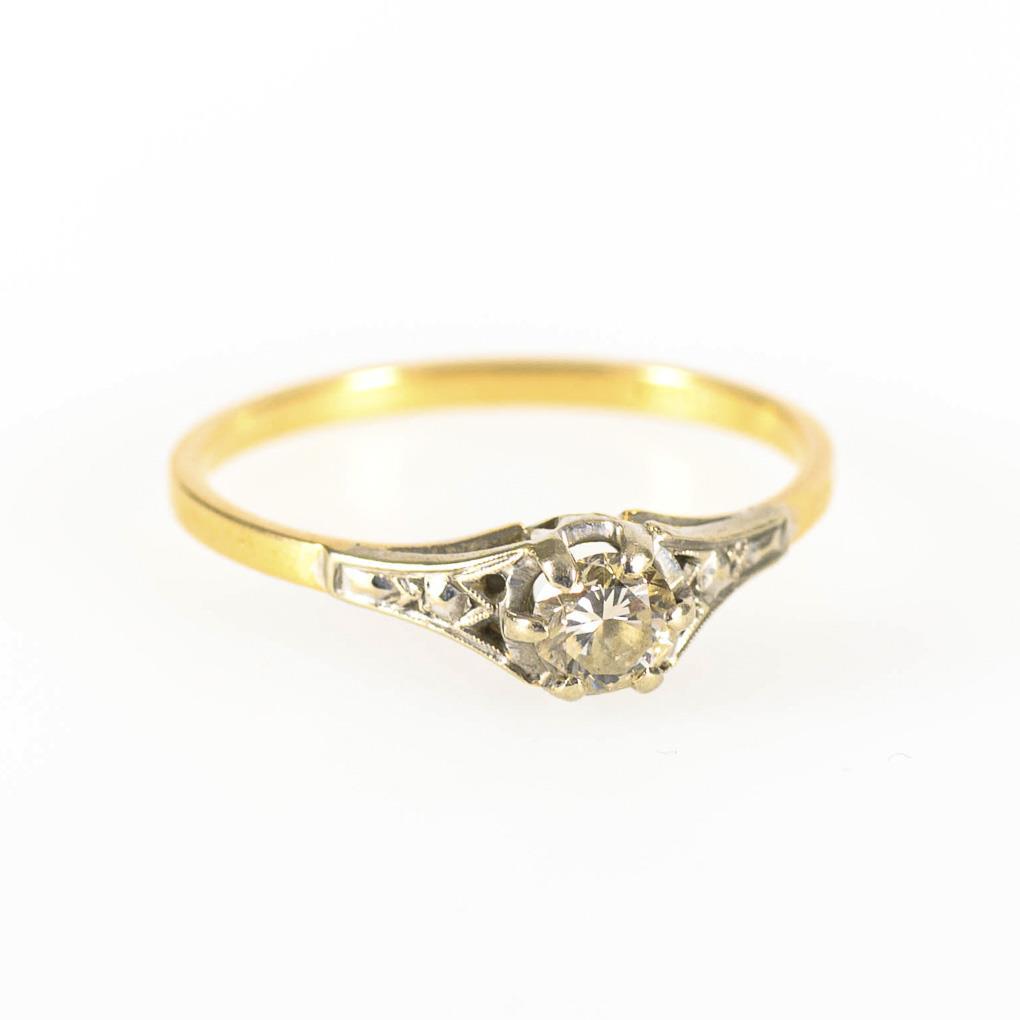 Yellow gold 750 tested. Brilliant Ø approx 3.8 mm. Ring size 56. 1.8 g.