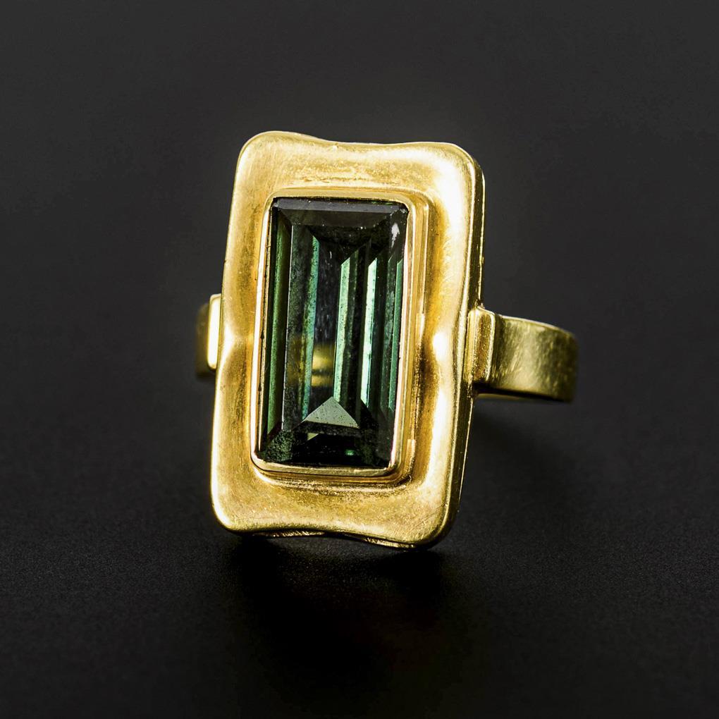 Yellow gold 585 stamped. Ring size 60. 7.8 g.