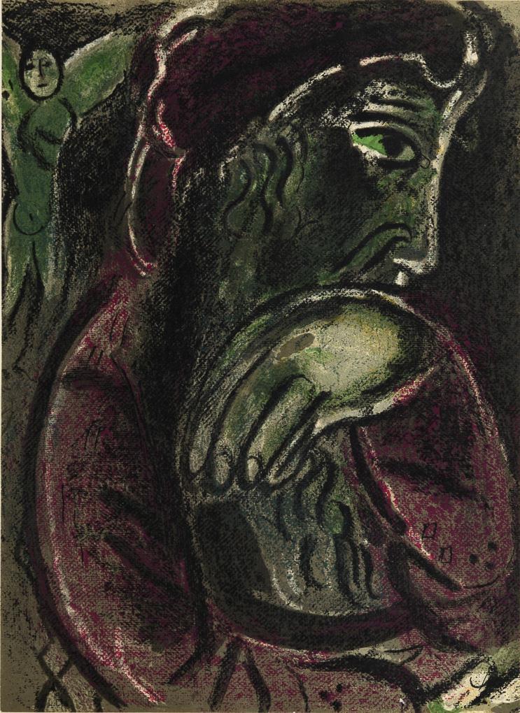 French painter of Russian-Jewish origin. He is one of the most important artists of the 20th century. "The preoccupation with biblical themes had from the beginning as an important prerequisite Chagall's experience in dealing with the Bible at a young age and the observation of a life from the Bible on his father. In addition, in the milieu in which he grew up, the word of the Bible was light and strength for many people in their difficult existence." (Achim Besgen on MC, www.herder.de).