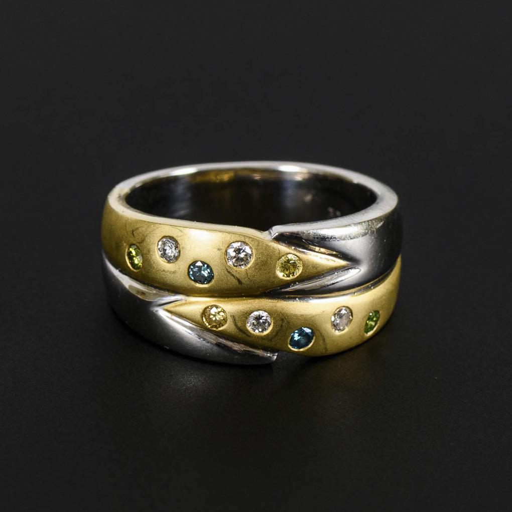 White gold/yellow gold 585 stamped. Diamonds total 0.30 ct. 10.7 g.