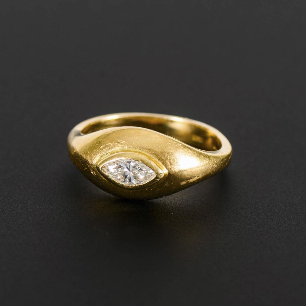 Yellow gold 750 stamped. Diamond approx. 0.30 ct. Ring size 48. 4.3 g.