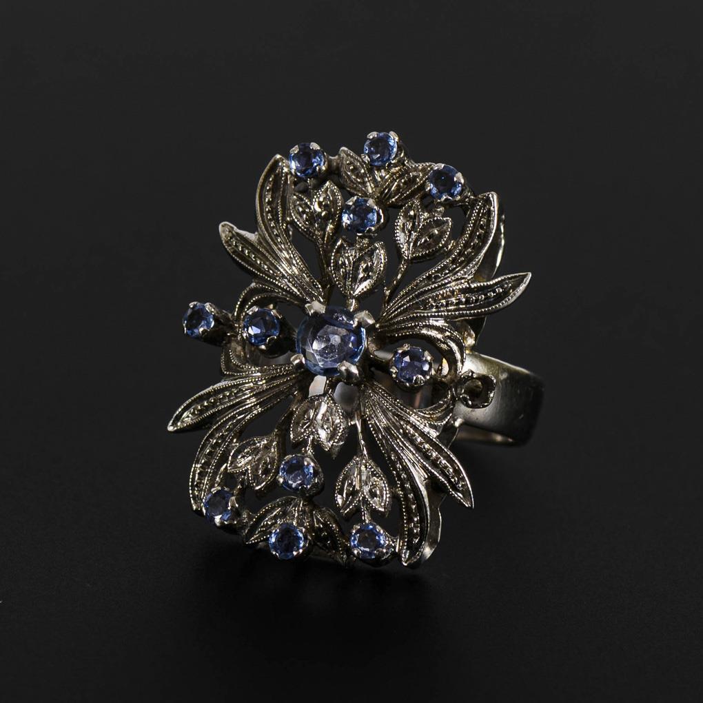Large ornament ring head with 13 set sapphires. Wide rail.