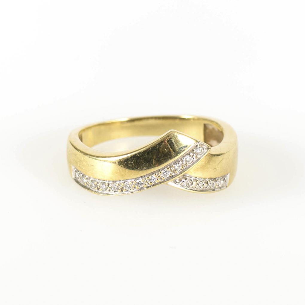 Yellow gold 585 stamped. Diamonds total 0.06 ct. Ring size 59. 4.2 g.