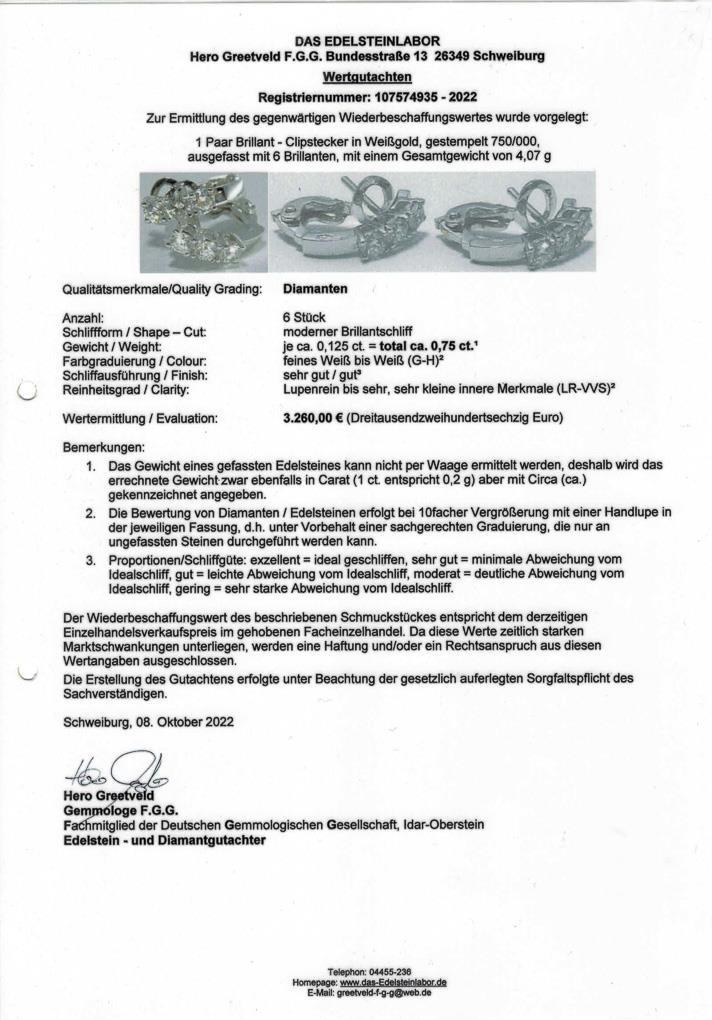 White gold 750 stamped. Diamonds total approx. 0.75 ct/G-H/Lr-vvs. 4 g.