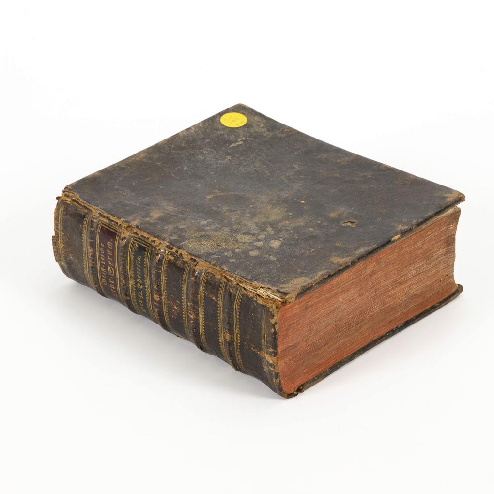 Copperplate, title page, (32), 929, (121) pages with various indexes to find the sayings. Translated by Fr. Philippo a S. Eliseo, barefoot Carmelite. Leather binding with red edges. Due to age signs of use, joints little torn, minimal paper tear in the back without loss of text.