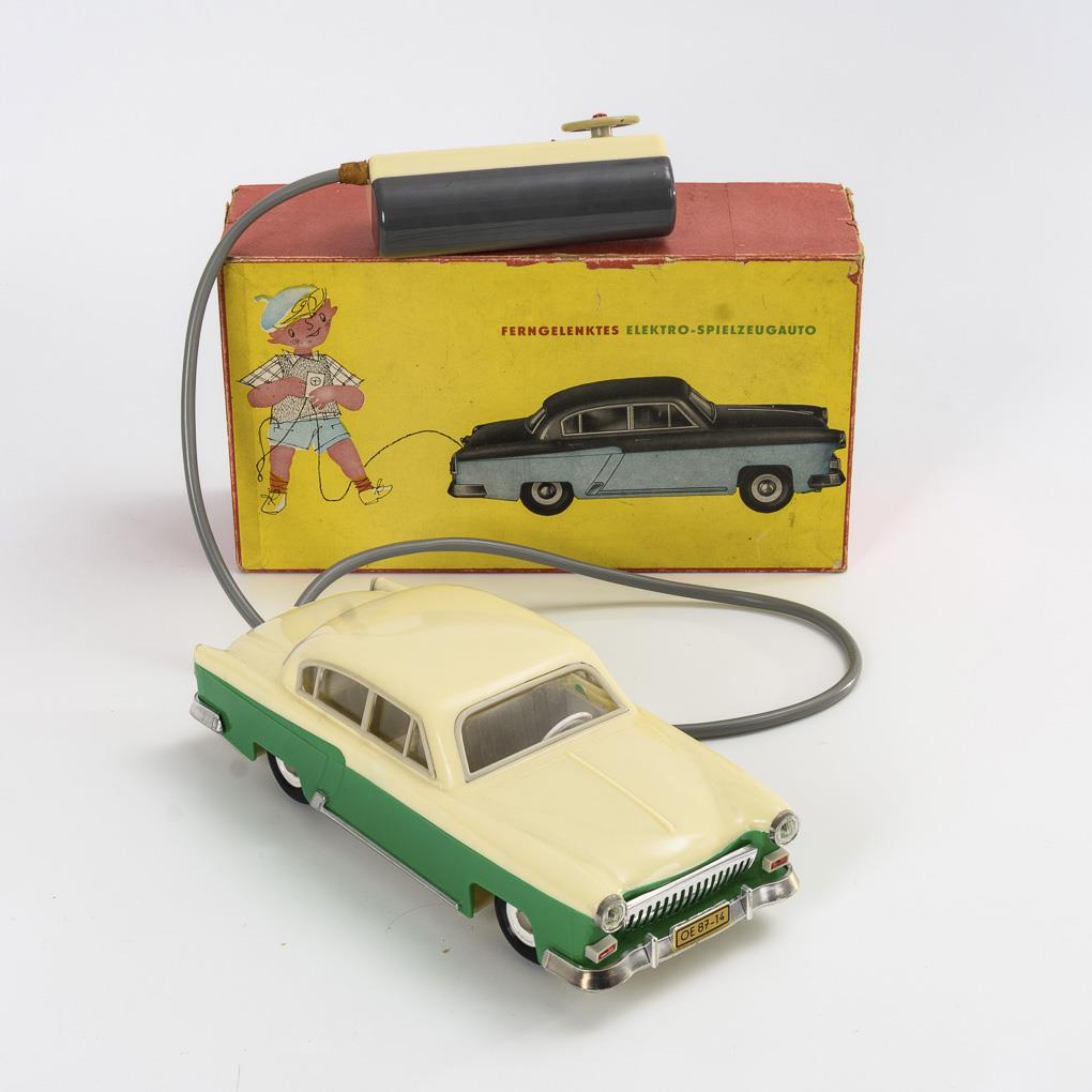 Remote controlled electric toy car in original box. PreSu (VEB Press-Spritzwerk Suhl).