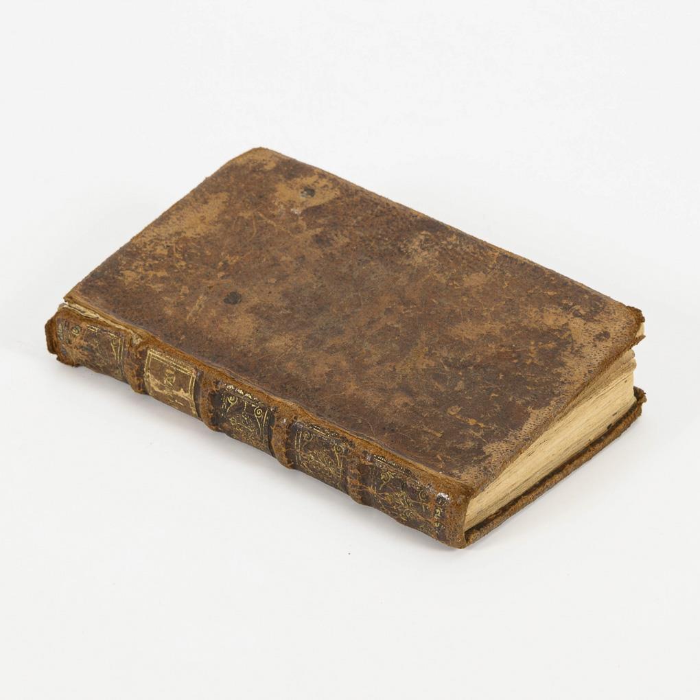 Title copperplate, 234, (3) pages. the comments on the poems of Horace are each on the same page in set off typography. Probably leather binding of the 18th century. Traces of use, handwritten entry in the endpapers.
