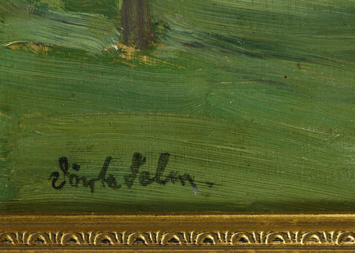 Oil/painted cardboard. Signed lower left.