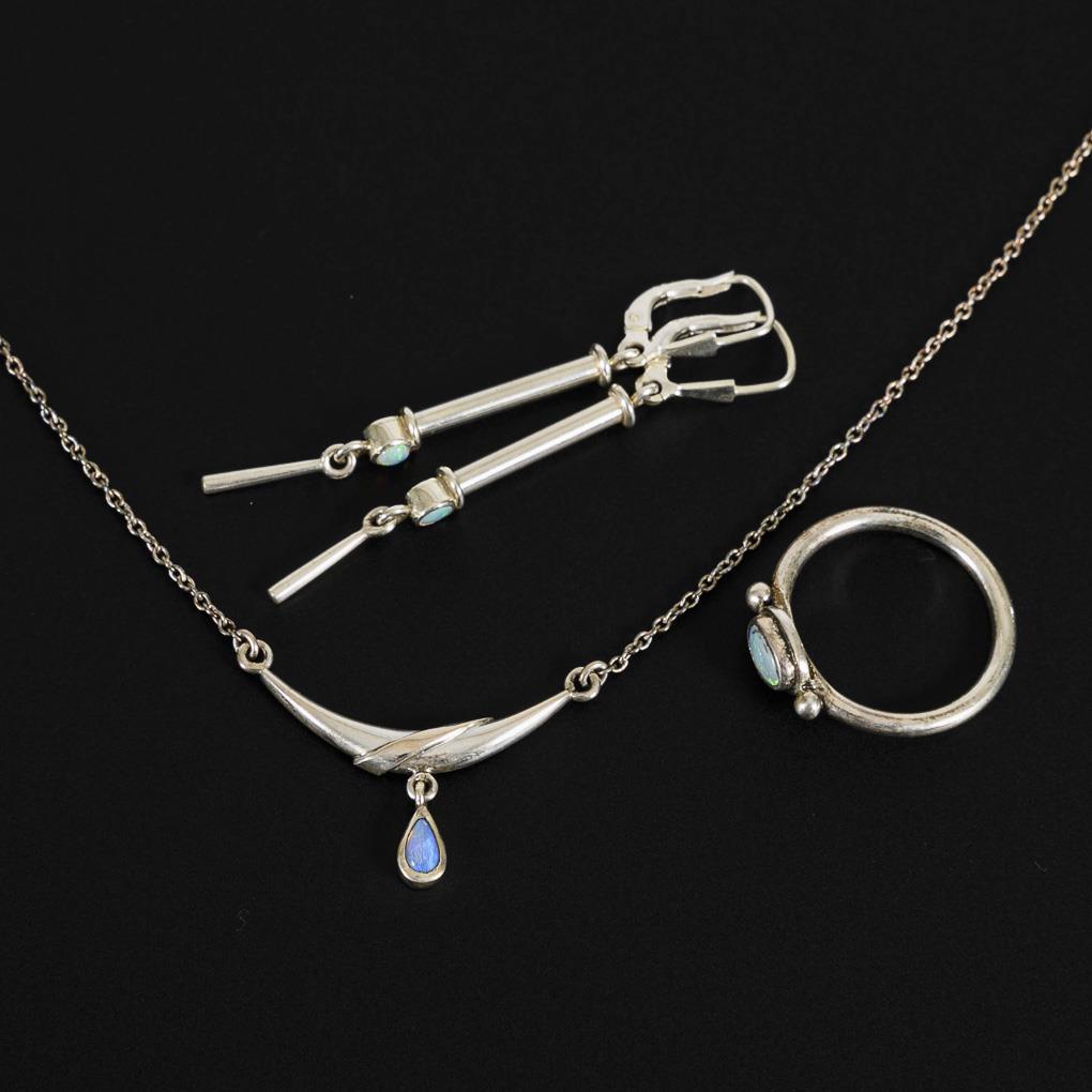 Collier, ring and pair of earrings with opals.