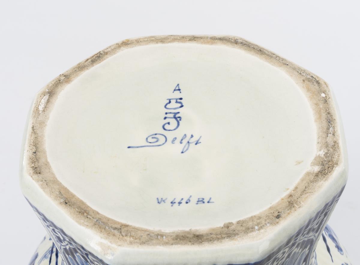 Delft faience lidded vase with flowers and birds. De Porceleyne Fles, Joost Thooft.