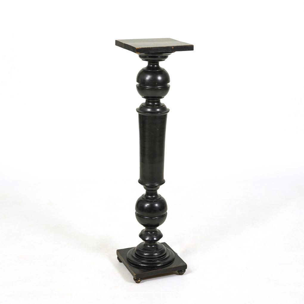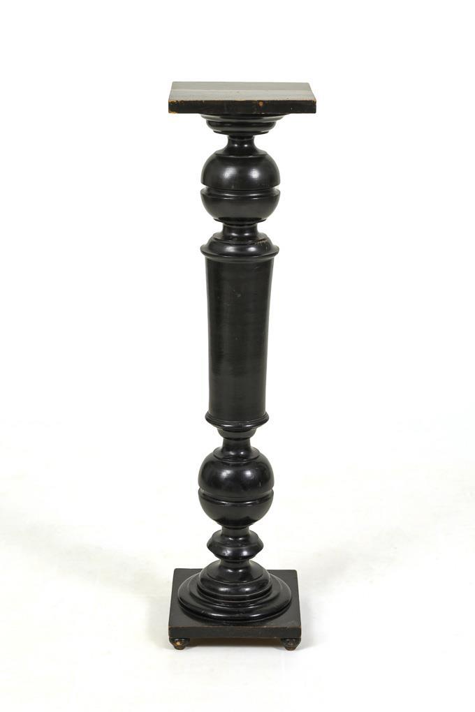 Hardwood set in black. H c. 111.5 cm, top plate c. 27 x 27 cm.
