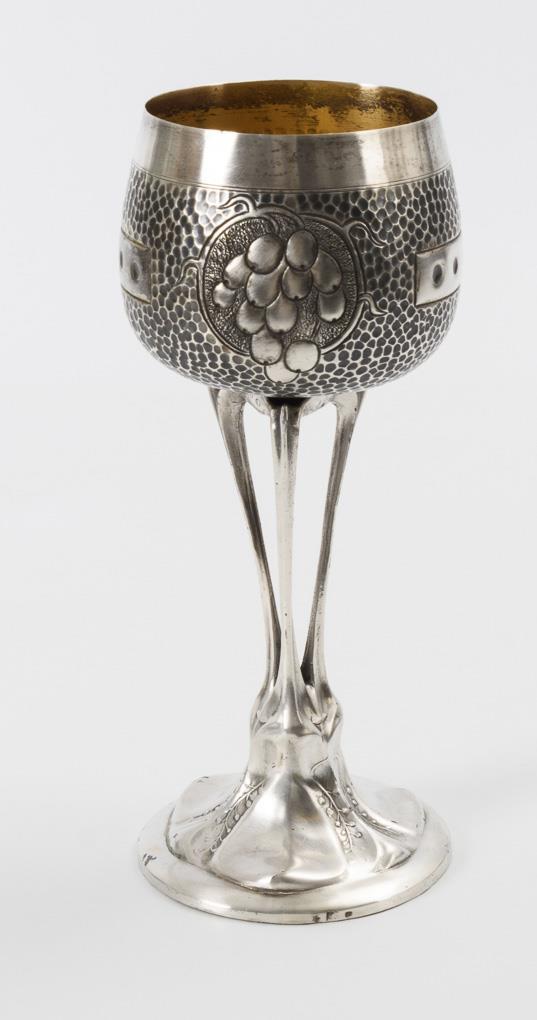 Pewter silver plated, gold plated inside. H 28.5 cm.