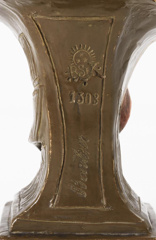 Small Art Nouveau bust of a young lady. Amphora Works / K. K.. Priv. Keramische Werke Riessner, Stellmacher & Kessel.