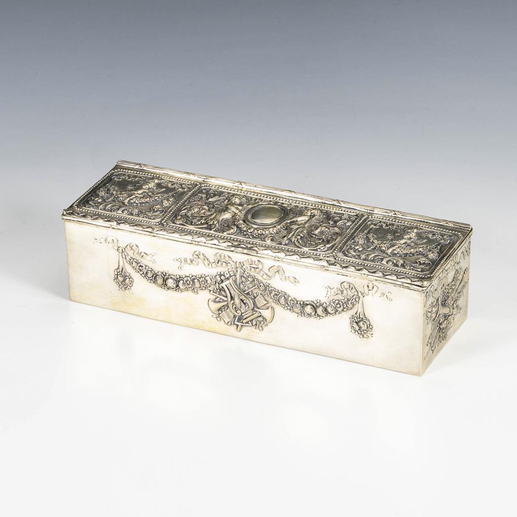 Rich relief silver casket. Probably J.D. Schleissner & Sons.