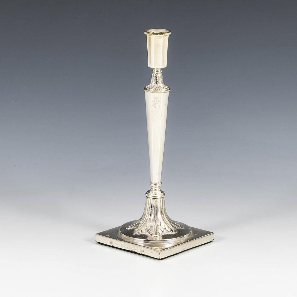 1-flame Empire chandelier with leaf relief, on square foot. Drip plate missing.