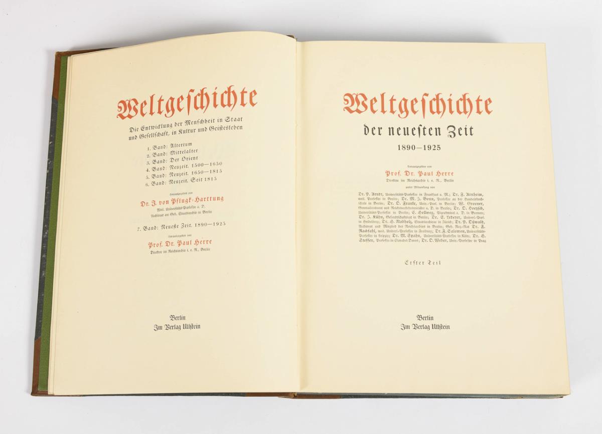 Richly illustrated edition in half leather binding with gold embossing. Antiquity, Orient, Middle Ages, Modern Times.
