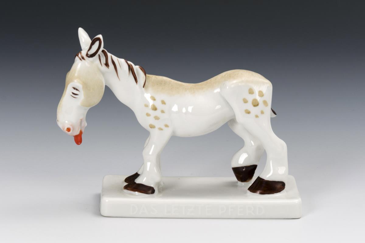 Standing grotesque figure of an old horse, inscribed "The Last Horse". Minimal bumping on the edge of the base.