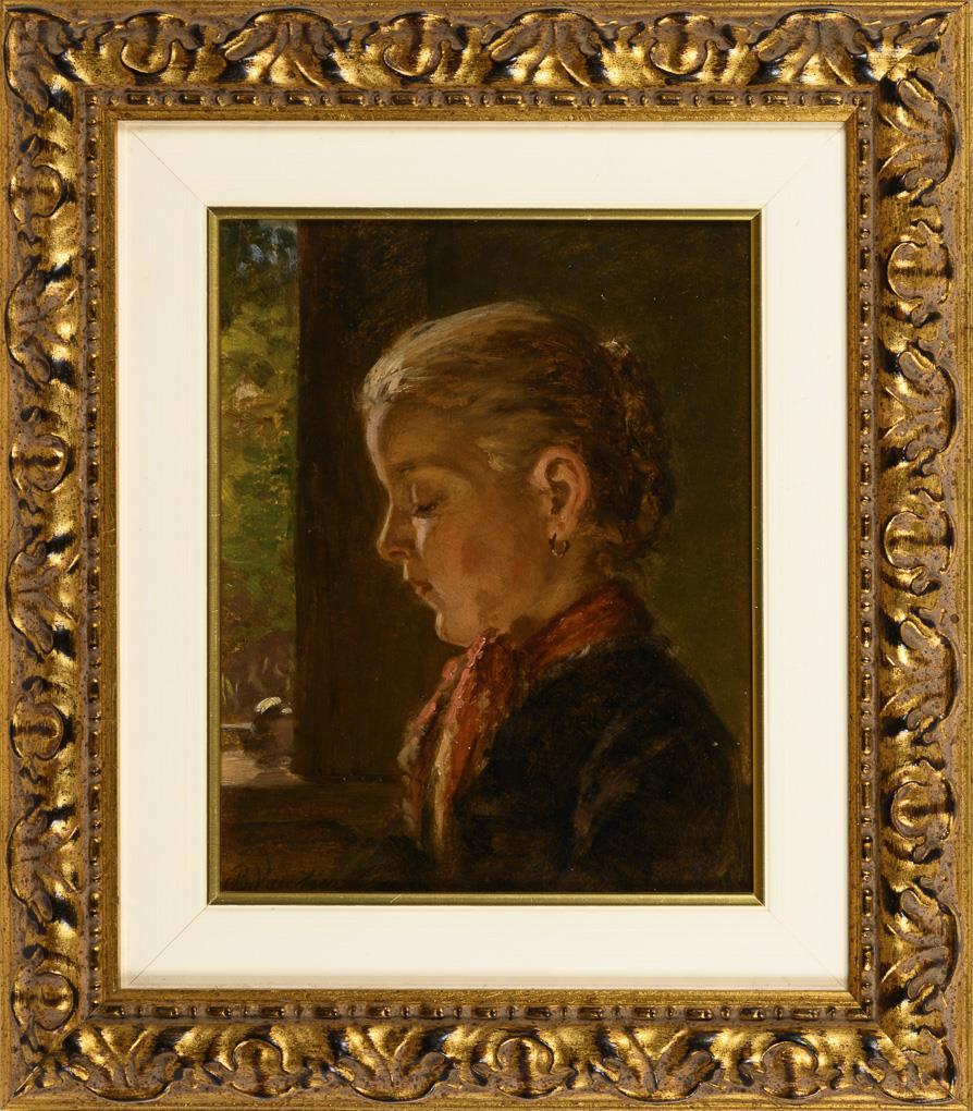 Oil/painted cardboard. Signed lower left. Late 19th century