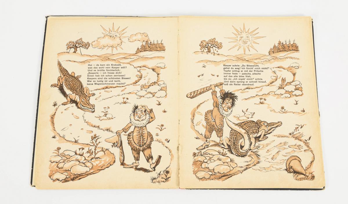 C.O. Peters: "Putiput's adventures", Verlag Jos. Scholz, Mainz. 16 pages, 30 x 22.5 cm. / Gertrud Caspari: "Mein Lachbüchl", Alfred Hahns Verlag, Leipzig, 30 pages, 23,5 x 20,5 cm. / Sixtus and Skarbina: "Das lustige Kasperle-Buch", Gerhard Stalling publishing house, Oldenburg 1928, 16 pages. / Ida Bohatta-Morpurgo: "My guardian angel", Verlag der Schulbrüder, Kirnach-Villingen, Baden 1930, 33 pages. All with color illustrations and in half cloth binding. Old signs of use.