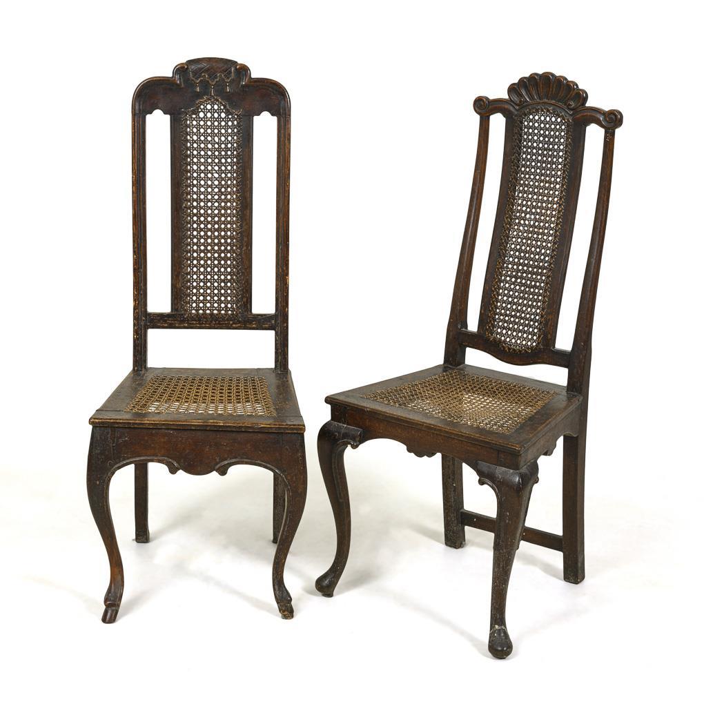Hardwood solid and stained. H each about 113 cm, seat height about 46.5 and 44.5 cm.