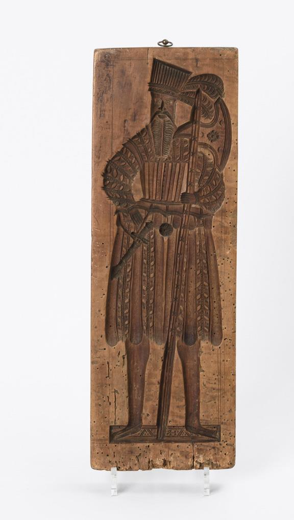 Each standing figures: nobleman with halberd and Salome with John's head and sword. Anobia traces, minor chips on the edge.