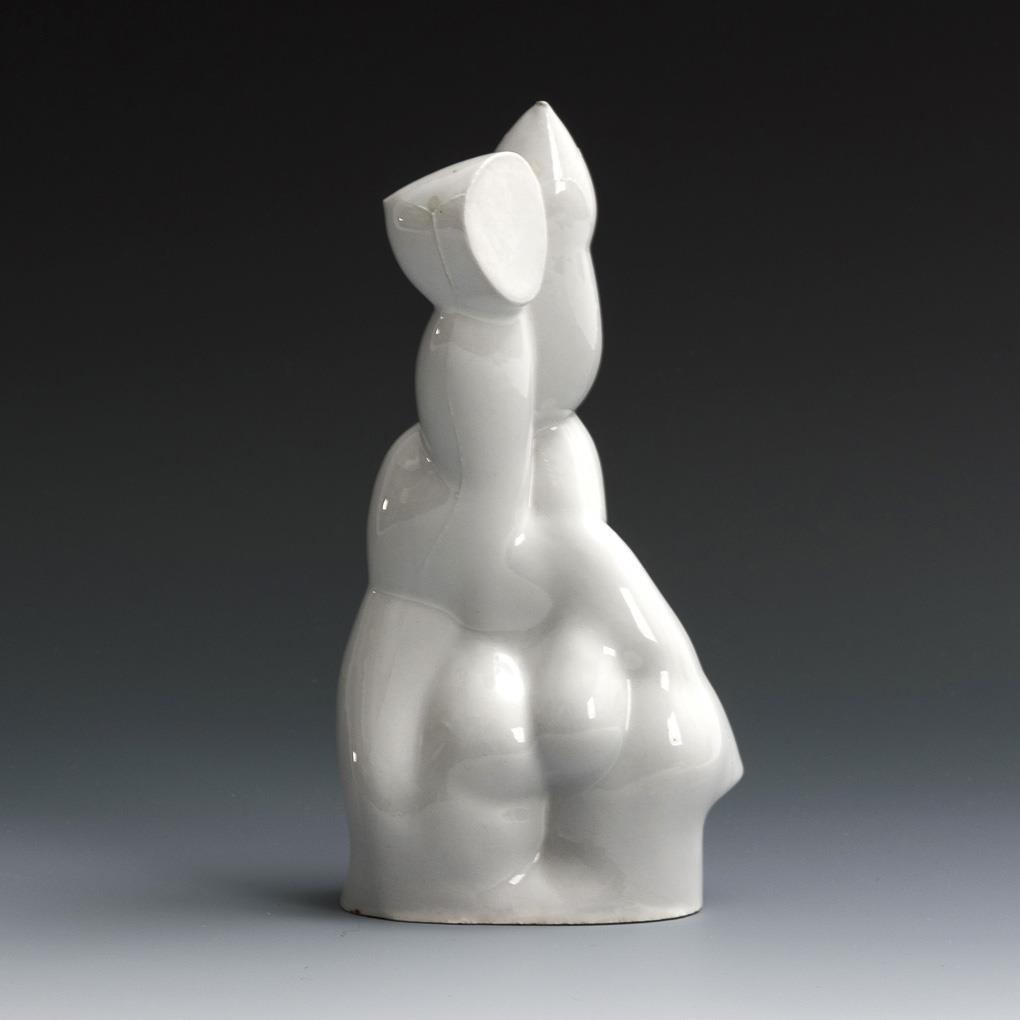 Female nude in the style of cubist figures. 2 bumps on the stand.