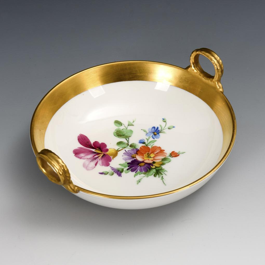 2 plates "Kurländer pattern" and handle bowl. KPM Berlin.