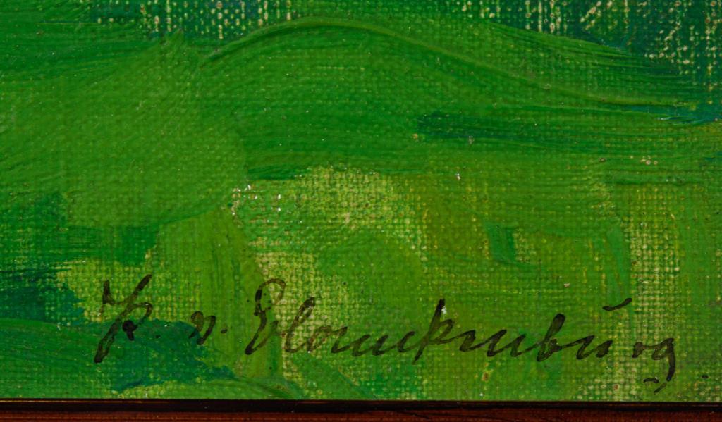 Öl/Leinwand.Links unten signiert, verso bezeichnet.