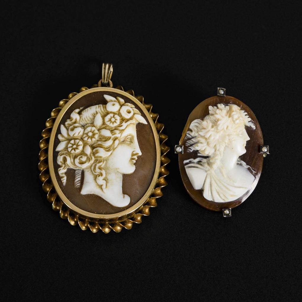 Pendant and brooch with shell cameo late 19th century.