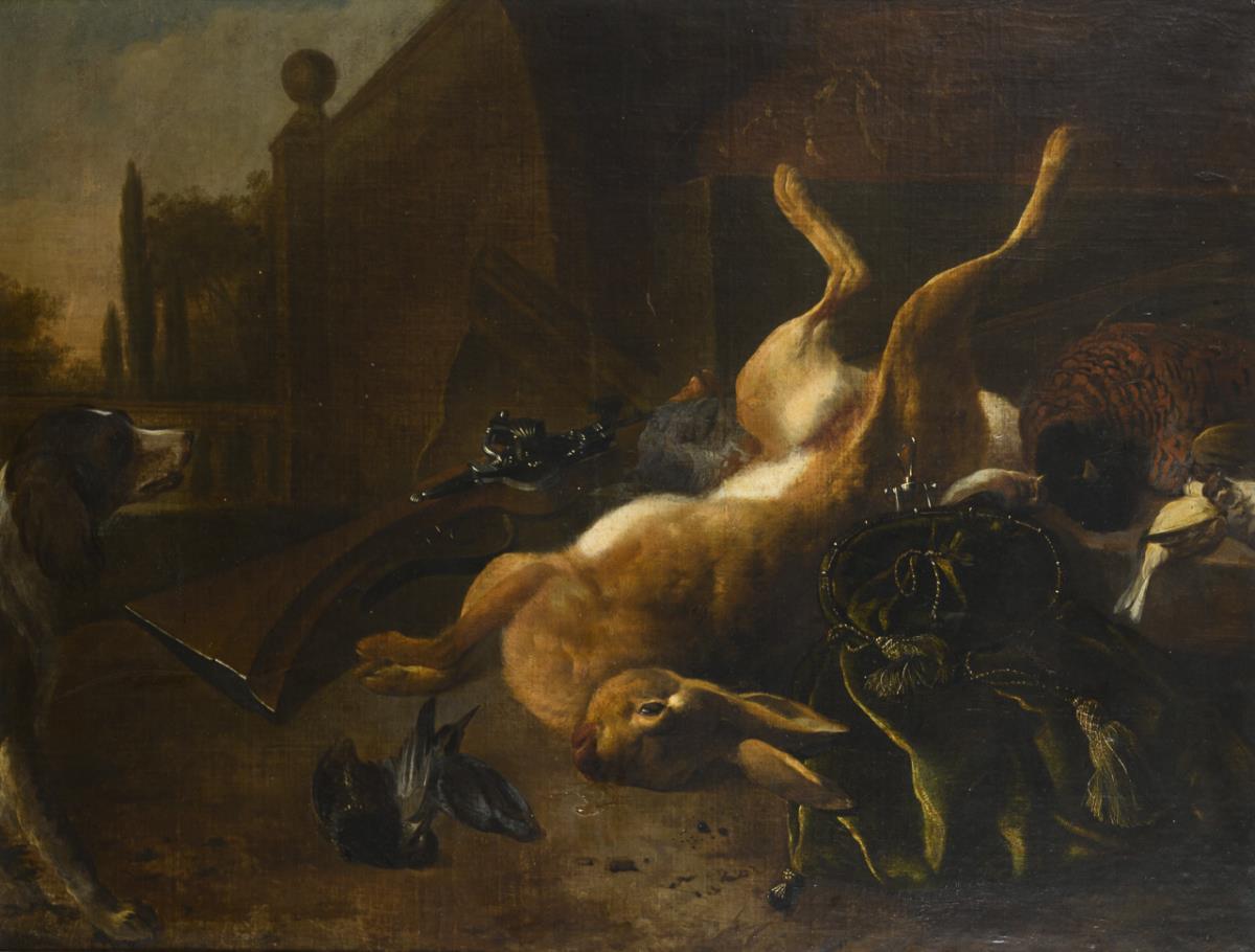 Baroque hunting still life with hare shot and poultry