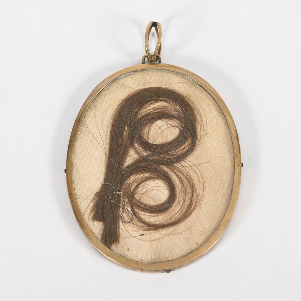 Miniature worked as a pendant glazed on both sides with the bust portrait of a young man; verso curl over light silk. Minimal signs of age/use.