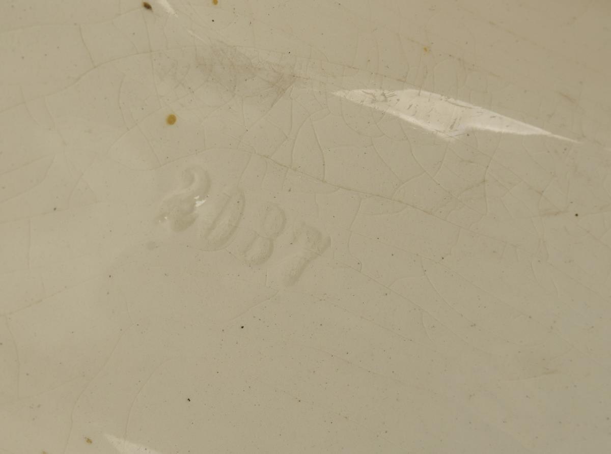 Round relief bowl on 3 floral struts and curved foot. 2 struts and foot restored, partially minimally bumped.