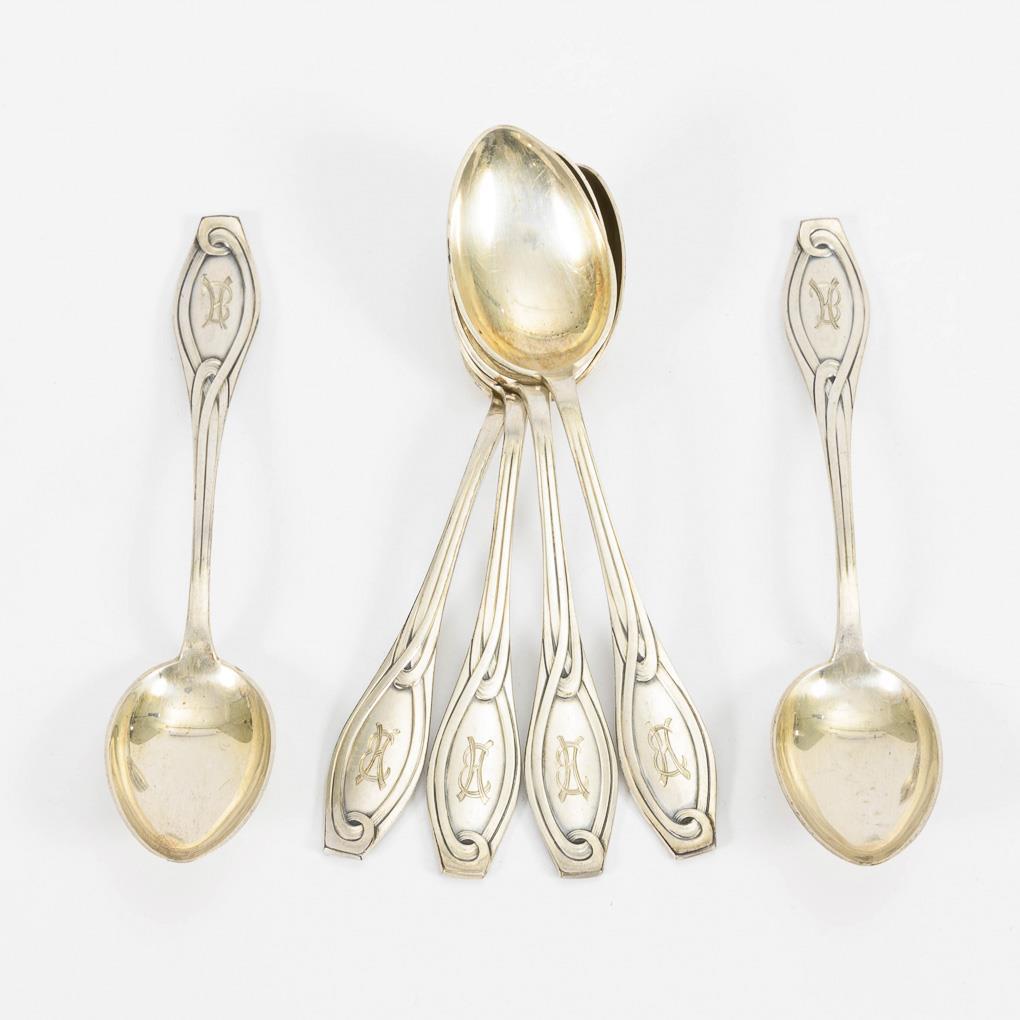 6 Art Nouveau coffee spoons in case. W. Schwechten, Berlin.