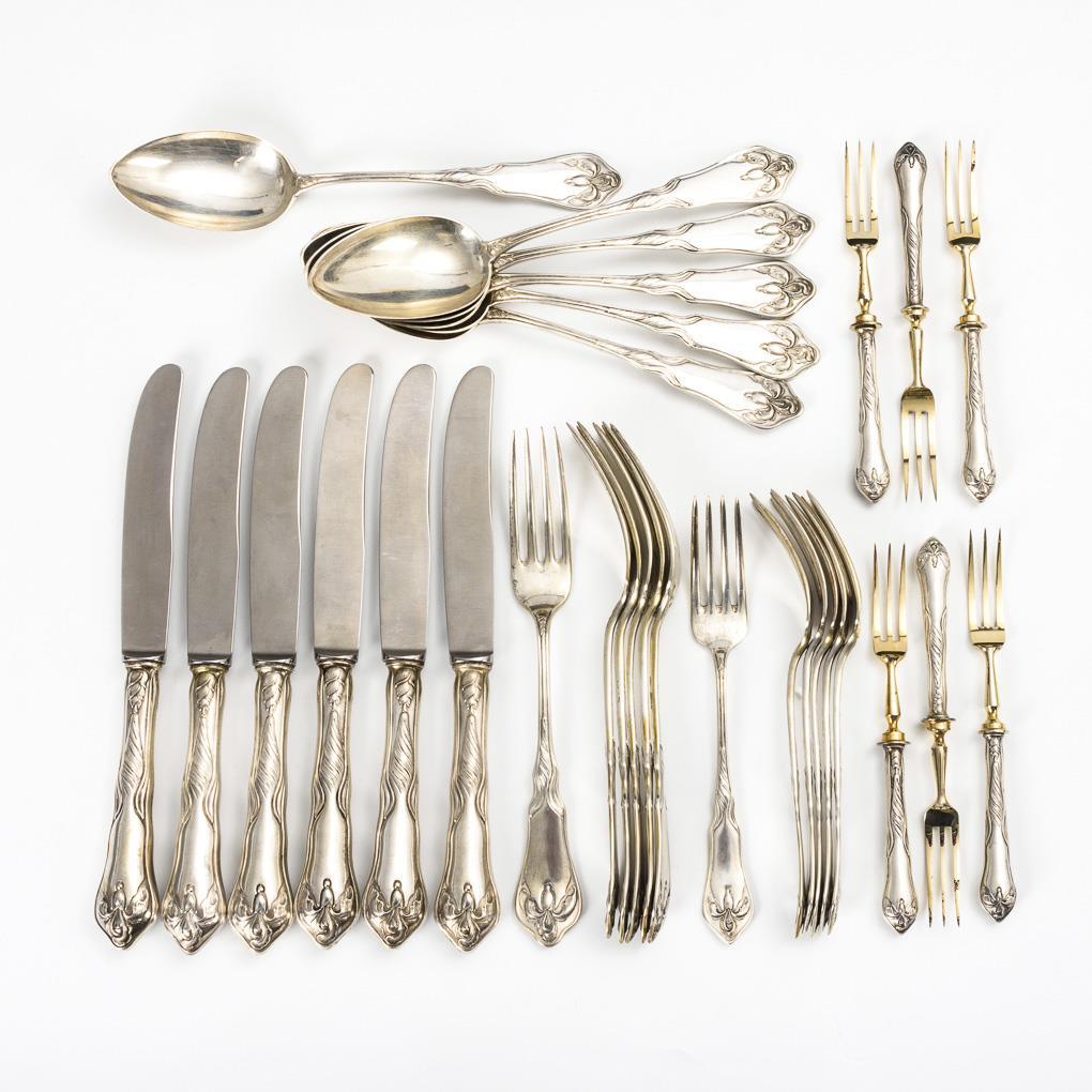 30-piece Art Nouveau cutlery. Wilhelm Binder, Schwäbisch Gmünd.